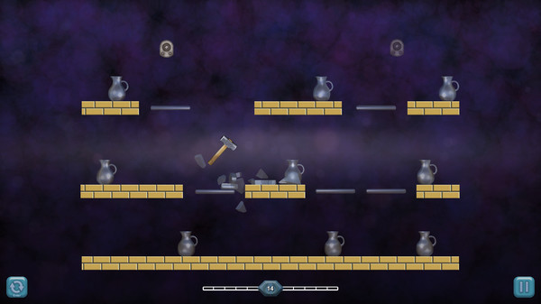 「Glass Smash 2」は、プレイヤーが投げ込むハンマーで割れるガラス製品を粉砕するパズルゲームです。ガラスの破片を避けながら、指定のラインまでガラスを割り続ける難易度の高い内容になっています。レベルごとにワナやオブジェクトの配置が変わり、常に新鮮な挑戦が用意されています。操作はシンプルながら、物理演算を活かしたゲームプレイで頭と目的意識が必要とされます。