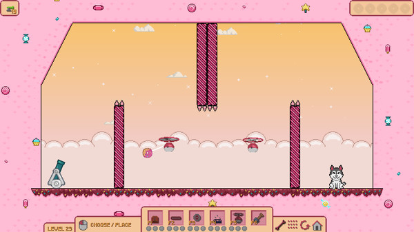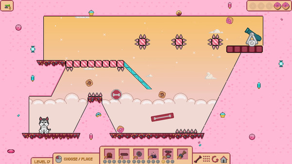 プレイヤーは限られた種類のオブジェクトをステージ上に設置し、角度や位置を調整して、ドーナツを子犬に届けます、