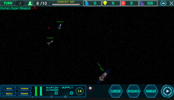MARTIAN CONQUERは、ターン制のストラテジーとスペースシューターがミックスされたメインキャンペーンモードを中心としたゲームです。五つのミニミッションを含み、各ミッションには特定の目的が設定されています。また、ボスを撃破しながらステージをクリアしていくアーケードモードも用意されています。ストーリーに沿って宇宙を探査しながら、戦闘を繰り広げ、拠点を強化していくというゲームプレイが特徴的です。