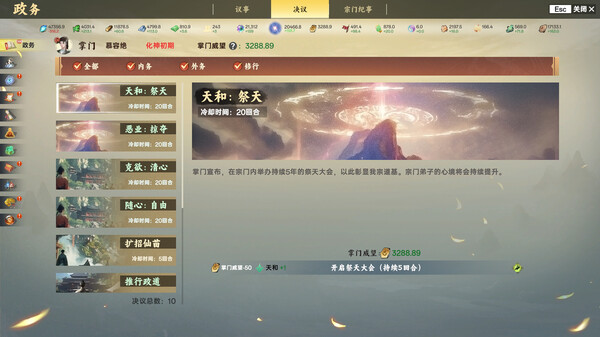 Ascensionは、プレイヤーが仙家の宗主となり、荒廃した宗門を再建していくストラテジー4Xゲームです。仙術の修行、弟子の育成、そして未知の地域の開拓など、仙侠ジャンルならではの要素が満載です。