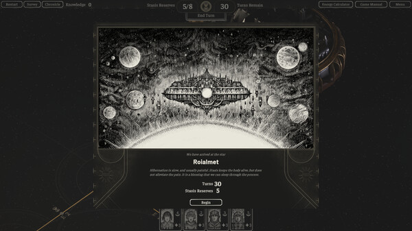ゲームは、太陽系探査、資源・乗組員管理、拠点建設といった要素が組み合わされた、ランベースのストラテジーゲームとなっています。