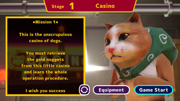 敵のイヌに金塊を奪われた猫ちゃんが、金塊を取り返すため様々な建物に忍び込むストーリー仕立てになっています。