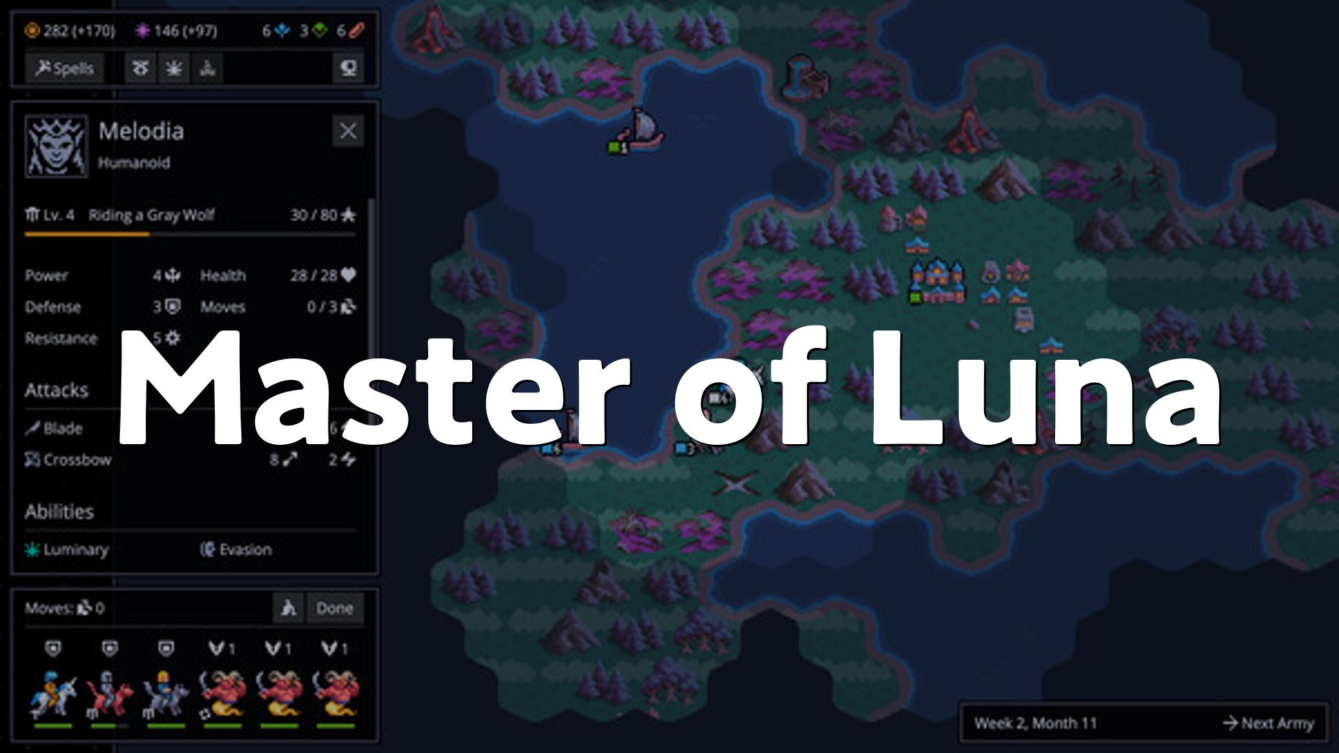 ほんのりもの哀しい月の光に包まれた世界で、半ば忘れられた神として再び力を取り戻す旅をする、ターン制ストラテジー『Master of Luna』を遊んでみました、