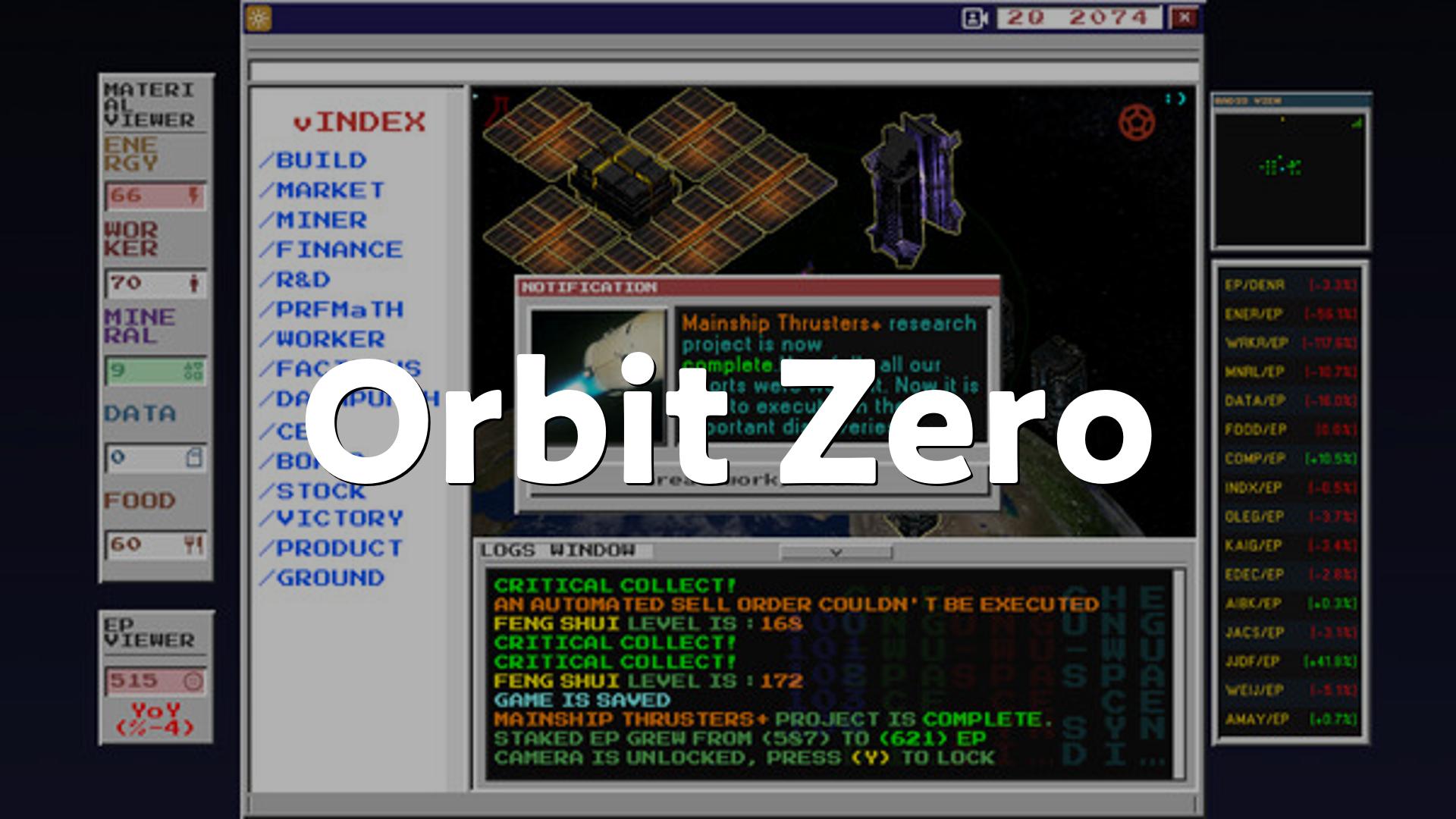 Orbit Zeroは、軌道上に基地を築き、19種類の建物を配置して資源を生産し、経営と防衛を両立させる経営シミュレーションゲームです、