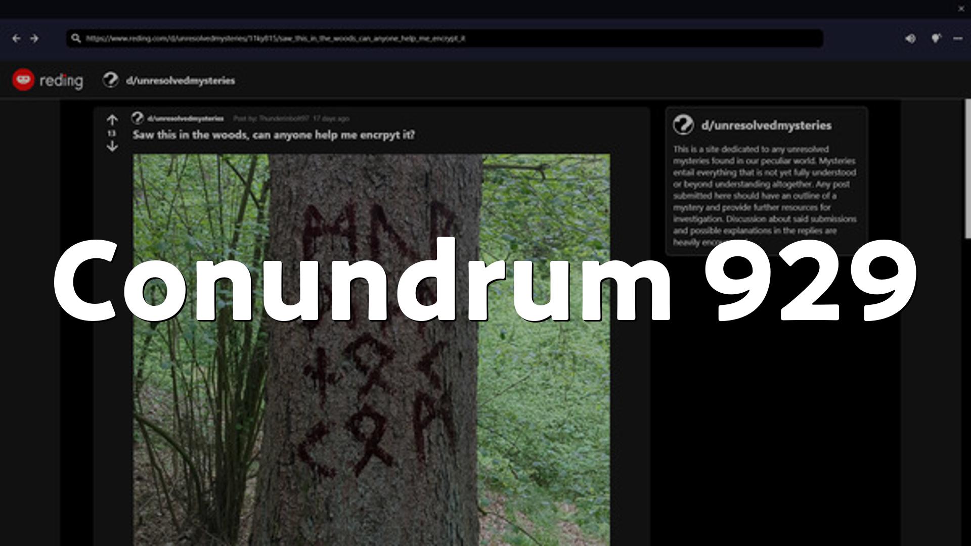 Conundrum 929は、実在のインターネットミステリーにインスパイアされた体験型謎解きゲームです、