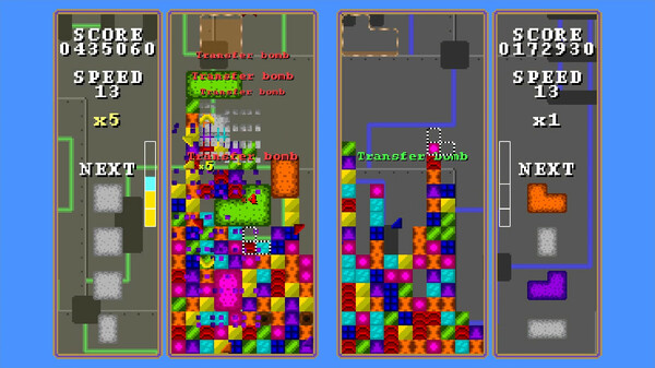 ポリミノは、シンプルな操作と高い熟練度を要する刺激的なパズルゲームです。 同じ色のブロックを揃えて、どんどん落下してくる大きなゴミ箱のようなピースを破壊していくのが目的です。盤面がいっぱいになってしまうと、次のピースが入らずゲームオーバーになってしまいます。