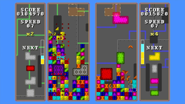ポリミノはとてもシンプルなルールながら、奥深い遊び方が魅力の1つです。重力を味方につけてコンボを決めたり、巧みなショットで大規模な破壊を引き起こすなど、自分のプレイスタイルを見つけ出していくのが楽しい体験となっています。 また、ステージクリアで新しい要素がアンロックされていくので、着実にレベルアップしていく喜びも感じられます。