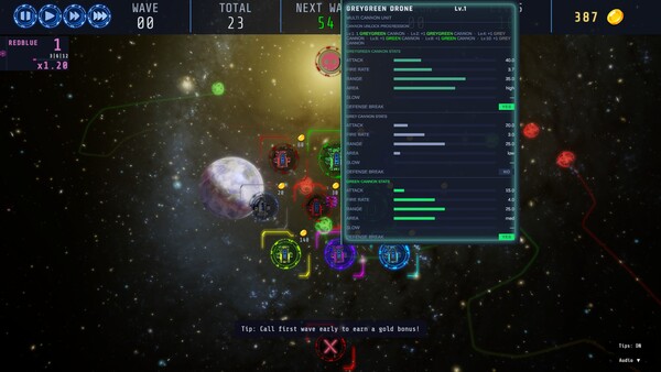 Starfendは、手軽に楽しめるタワーディフェンスゲームです。宇宙空間を舞台に、ドローンを配置して隕石の襲来を撃退していく爽快感は格別。ランダムマップで毎回異なる遊び応えが得られるのも魅力的です。ゲームの仕組みはシンプルながら奥深く、戦略的な要素が楽しめます。開発者が丁寧にアップデートを行っているので、今後さらに良い作品になっていくことでしょう。(編集部)