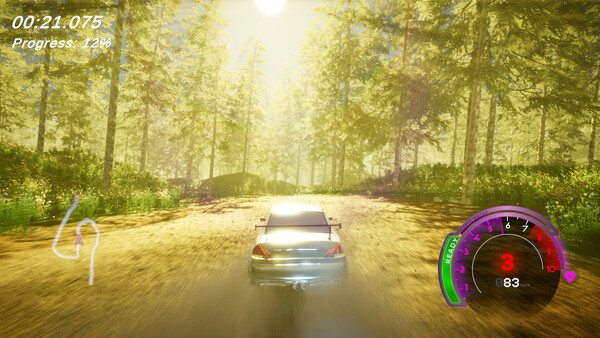 「Posthaste」の最大の特徴は「ヘイストメーター」です。ドリフティングや高速走行を行うことでメーターを溜めることができ、満タンになると「プロブースト」を使用できるようになります。このプロブーストを上手く活用することで大きなスピードアップが可能になります。また、プロブーストを使い切らずにゴールまで走り切ると、小さな得点ボーナスが得られます。現在利用可能なコンテンツには、3つのマップ/ステージ、3台のラリーカー、そして7つのSteam実績が用意されています。