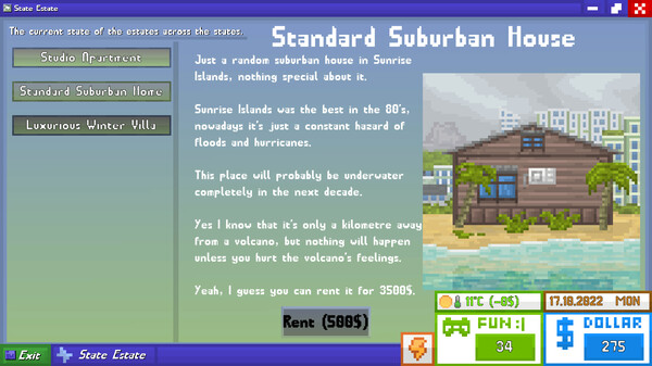 プレイヤーはアルバイトや職業をこなしてミニゲームでお金を稼ぎ、稼いだ資金でゲームを購入して「楽しさ(fun)」を回復しながら、住居のアップグレードや地域のアンロックを目指します、