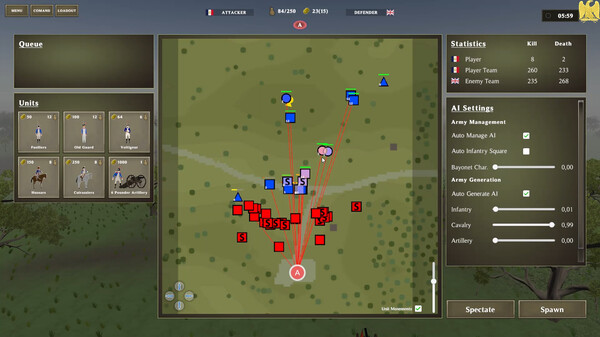 ナポレオン戦争、アメリカ独立戦争、南北戦争といった三つの時代をカバーし、各国ごとに砲兵、騎兵、歩兵といったユニットが用意されています、