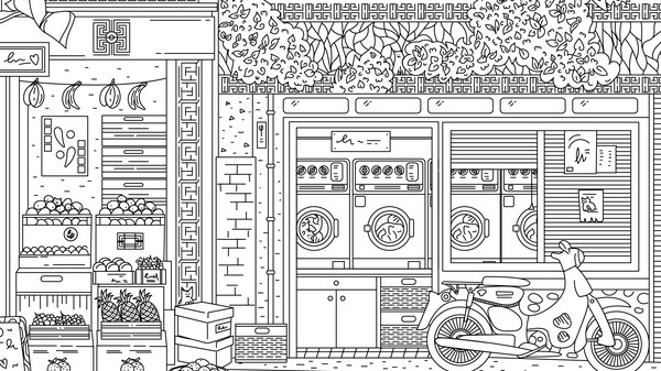 背景は細かく描き込まれていて、提灯や建物の陰などに巧妙に猫が紛れており、探索する楽しさがあります,