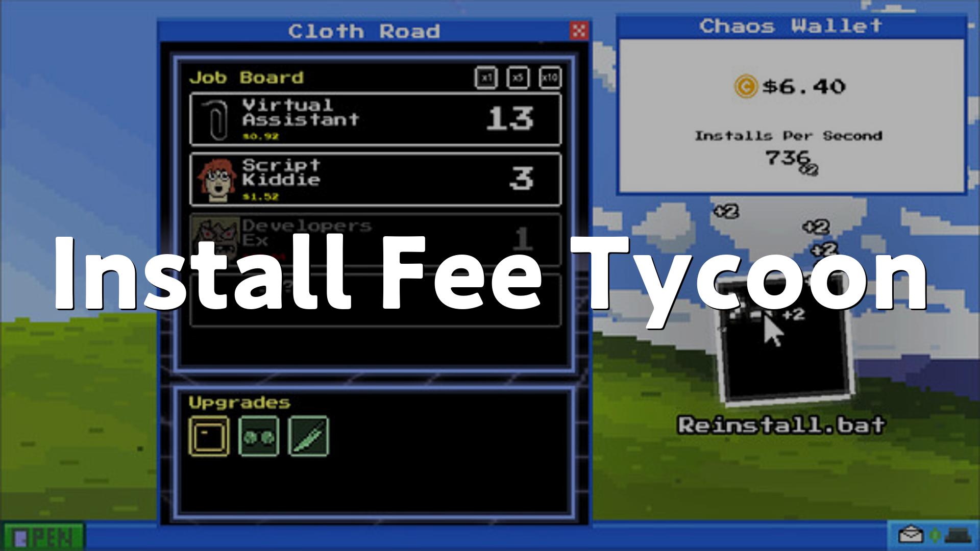 Install Fee Tycoonは、風刺を効かせた「アイドルクリック」タイプのゲームで、