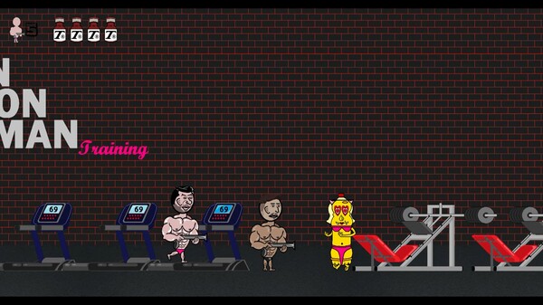 プレイヤーは五人の個性的なボディビルダーのいずれかを選び、ステージを駆け抜けながら敵を撃破しつつ進んでいきます、