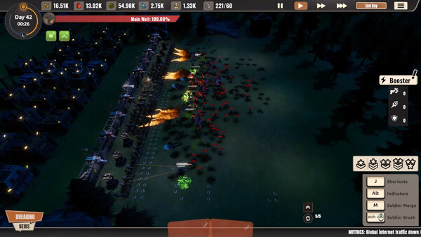 City Defense Zは、昼と夜のサイクルが特徴的なタワーディフェンスゲームです。昼間は街の拡張や防御施設の建設、兵士の育成に時間を使い、夜になるとゾンビ軍団の猛攻撃に備えます。リソースの管理、建物の配置、兵士の編成など、様々な要素を総合的に考えながら戦略を立てる必要があります。昼と夜のリズムに合わせて、プレイヤーの緊張感が高まっていきます。また、プレイするごとに異なる展開になる「ローグライク」な要素も組み込まれており、飽きが来にくいのが特徴です。