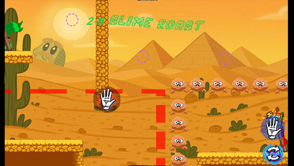 プレイヤーはスライムの父を助けるために、手の動きで箱を動かしたり、通路を作ったりしてステージを攻略します、