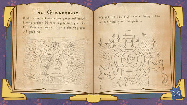「tiny Cats」は、屋敷の謎を解き明かしながら、そこに隠れた猫の精霊たちを救出していくアドベンチャーゲームです。プレイヤーは主人公となって、故人となった伯母の遺産である魔法の屋敷を調査することになります。屋敷の部屋を丁寧に探索し、隠れた猫たちを見つけ出していくゲームプレイが特徴です。見つかった猫たちは、魔法によって色とりどりにきらめく姿に変化していきます。また、屋敷の中にはさまざまな謎や秘密が隠されており、それらを解いていくことで物語が進行していきます。キュートな雰囲気と不思議な物語が心地よく融合した、のんびりと楽しめる作品となっています。