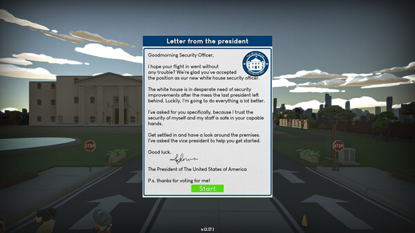 「State Your Business」は、ホワイトハウスのセキュリティ担当者になって、さまざまな訪問者の身元確認や車両検査を行うアクションゲームです。プレイヤーは、与えられた任務をこなすことで給料を得て、セキュリティレベルを上げていくことができます。
