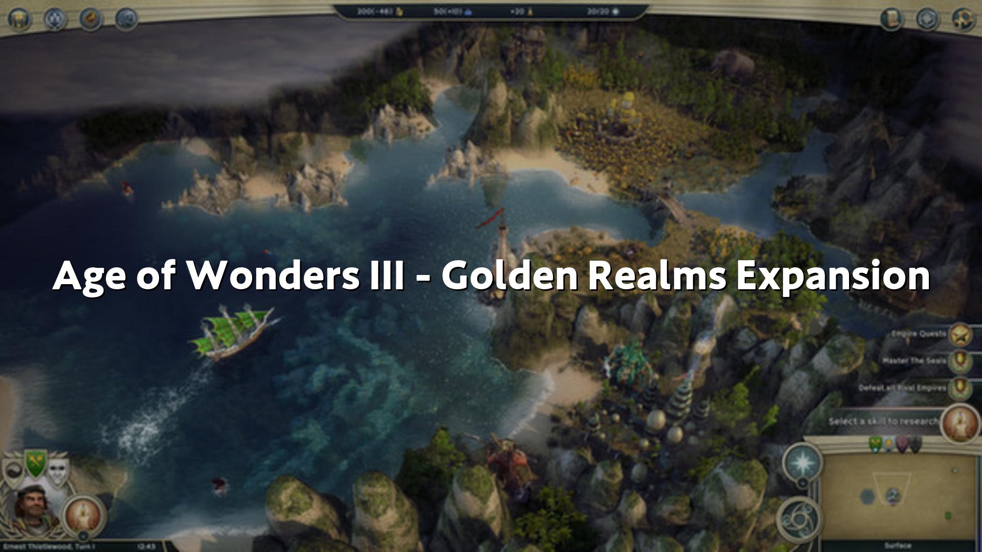Age of Wonders III – Golden Realms Expansionは、ターン制の戦略ゲーム、Age of Wonders IIIの拡張パックで、帝国運営とヒーロー主体の戦闘を融合させたゲームプレイをさらに発展させます、本拡張は新種族ハーフリング、新中立居住地ナガ、二つの新たな特化(ワイルドマジックとパルチザン)、そして「シール(封印)」を用いた代替勝利条件などを導入しています、また、遺跡や宝のある「神秘の遺跡」を領地に取り込むことで、都市ごとに固有のアップグレードを建造でき、都市の役割分担や戦略的拠点形成がより重要になります、加えて50種類に及ぶ新アイテムや20種以上の新ユニット、手作りのシナリオや三部構成のハーフリングキャンペーンも含まれ、ランダムマップジェネレーターに統合されているため、リプレイ性が高い点も特徴です。