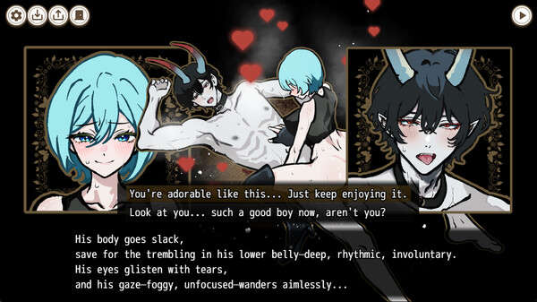 このゲームはプレイヤーであるあなたが、穴に落ちて出口を探しているところを悪魔に捕まえられてしまうというストーリーです。 出口までたどり着けば命は助かりますが、悪魔は代償を要求してきます。あなたはその要求に従うのか、それとも悪魔を従えることができるのか。選択肢によって7つの異なる結末が用意されています。悪魔との関係性を深めていくにつれ、徐々にエロティックな要素も増えていきます。簡単なミニゲームをクリアしながら、悪魔との駆け引きを楽しむことができる、ちょっと刺激的な18禁オトメゲームです。
