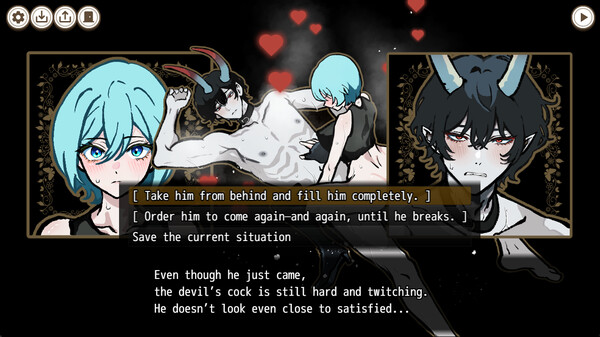 偶然穴に落ちてしまった冒険家のあなたを、悪魔が捕まえようとしています。でも、簡単な抜け道のゲームに勝てば命は助かるかもしれません。果たして悪魔に従うか、それともあなたが悪魔を従わせることができるのでしょうか?このスリリングでちょっと刺激的なオトメゲームをぜひお楽しみください。