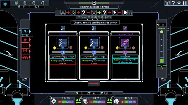 Timeoutはローカルマルチプレイに対応しており、最大4人までの協力プレイが可能です。各プレイヤーが自分のキャラクターとデッキを操り、チームとして連携しながら戦う楽しみがあります。オンラインでのマルチプレイには対応していませんが、友人と対面でプレイできるローカル機能により、臨場感のあるチーム戦略ゲームを楽しめます。