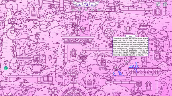 単なる探索ゲームだけではなく、猫たちの感動的な物語にも触れることができるのが魅力です。手描きのキャラクターデザインや、BGMも物語のテイストに合わせて丁寧に作り込まれており、ゲーム全体を通して癒やし効果を感じられるでしょう。