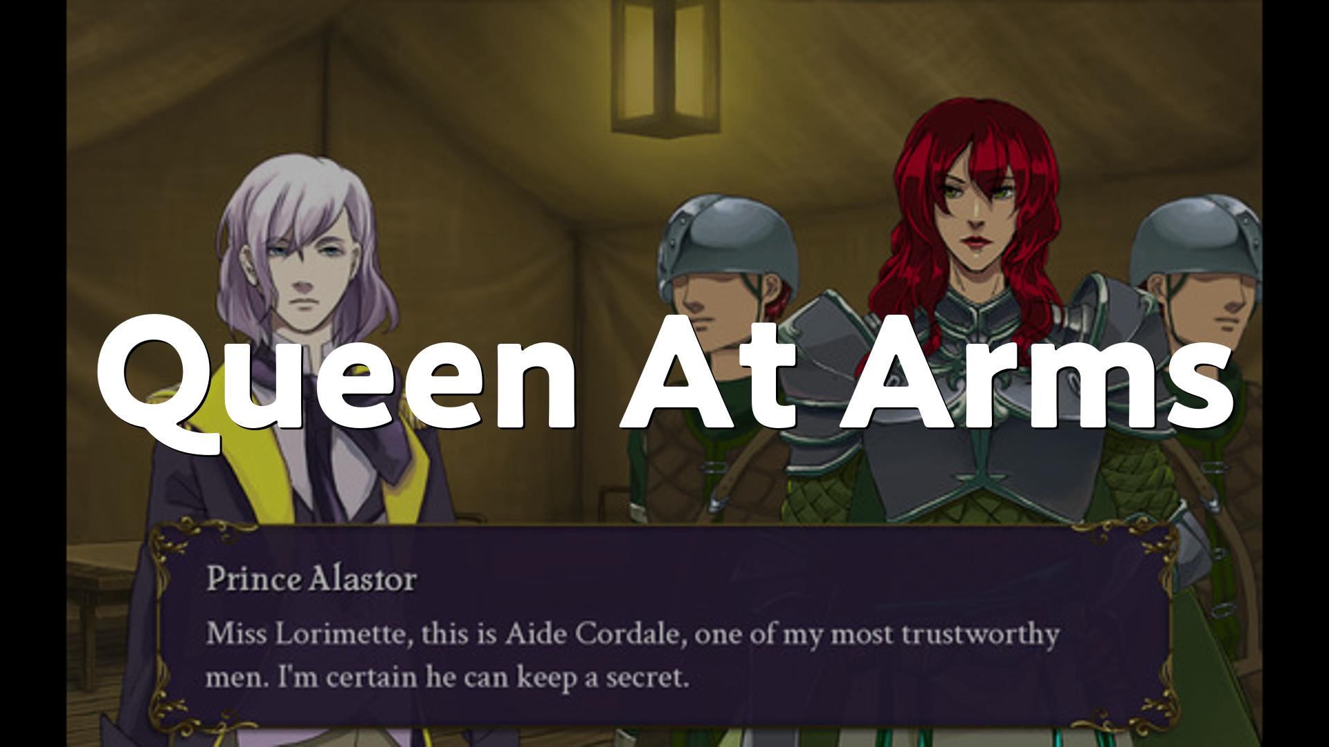Queen At Armsは、若い女性である主人公が狂王の軍を率いることを強いられるという、ジャンルを横断するファンタジー系ビジュアルノベルです、