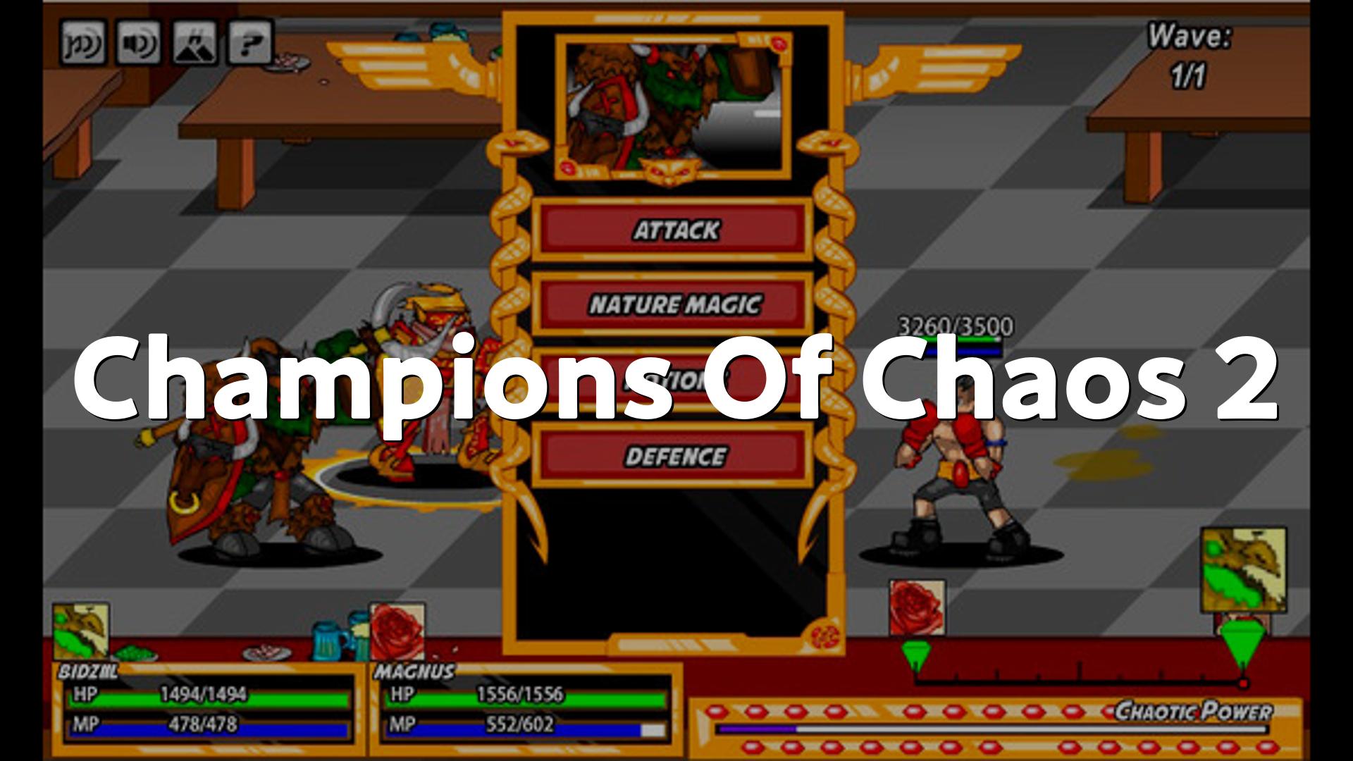 Champions Of Chaos 2は、アリーナで波状攻撃をかわしながら名声と同盟を勝ち取ることを目指す、二人パーティ制のアリーナ型ターン制RPGです、