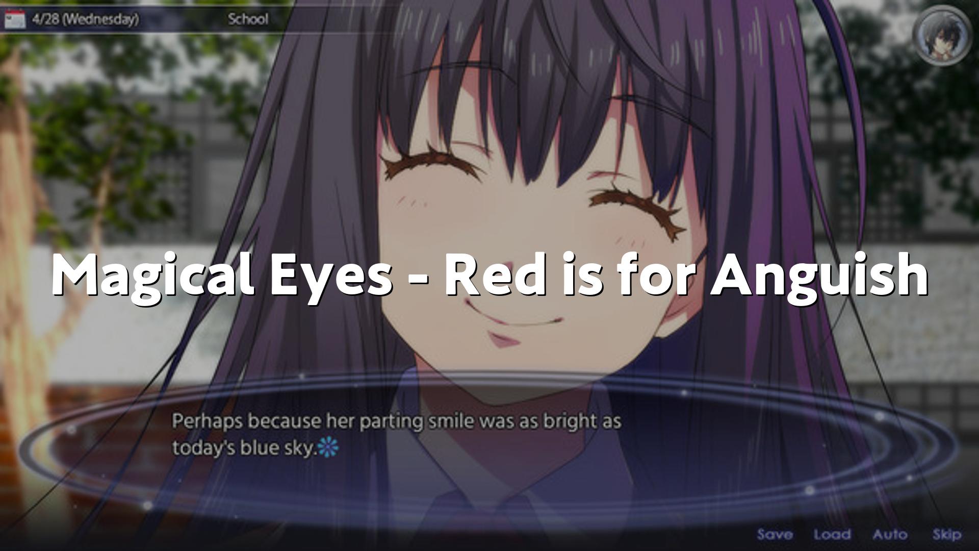 「Magical Eyes – Red is for Anguishはビジュアルノベルです、ホラー要素とユーモアが混ざっていて、文章の出来がとても良いです、始まりと終わりのテーマソングまであり、アニメ的な雰囲気が楽しめます」、