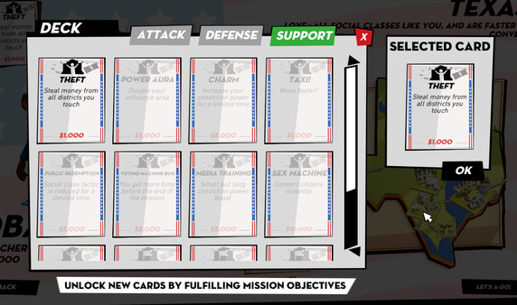 説明文のとおり、印象的な支持層には金銭的な働きかけやゴシップ流布といった「ダーティ」な手段も用意されており、策略でライバルを出し抜く楽しさが用意されています、