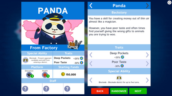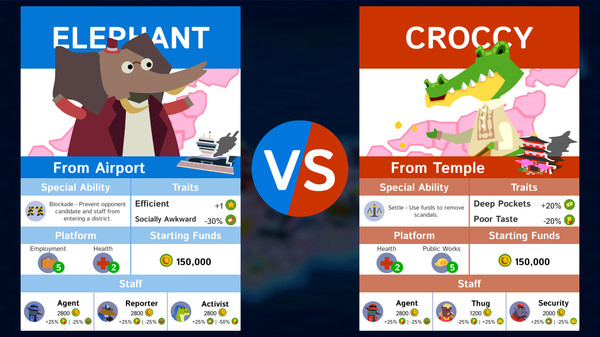 スチームでの声を参考にしつつ、筆者視点で率直におすすめしたいのがPolitical Animalsです、ターン制で選挙を戦うというユニークな切り口に、可愛らしい擬人化された動物たちのデザインが合わさって、硬派になりすぎないちょうど良いバランスを実現しています、資金やスタッフをやりくりしながら有権者の心を掴む過程は、軽い頭脳プレイとして気軽に楽しめます、また、汚職やスキャンダルといった政治の裏側をシニカルに描くことで、単なるシミュレーション以上の味わいがあり、プレイごとに選択肢が変わるリプレイ性も魅力です、初心者でも入りやすく、戦略の幅も感じられる良作インディーとして紹介したい一本です、