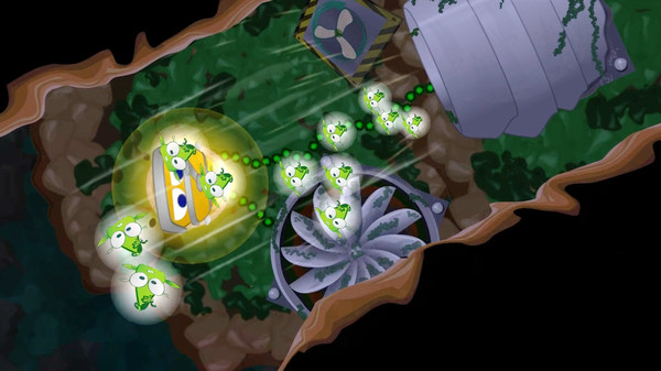 プレイヤーは光を使ってホタルを誘導し、巨大な掃除機のような出口まで導きます、