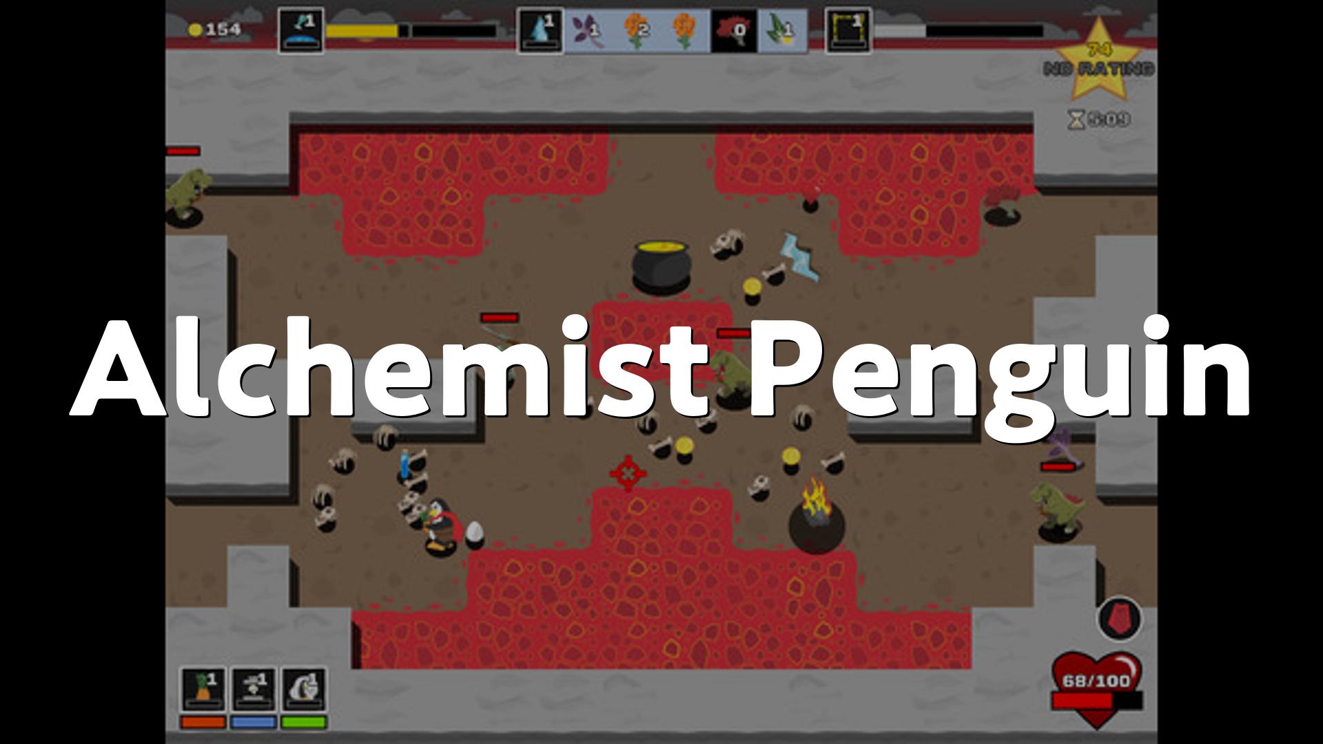 Alchemist Penguinは、隕石の衝突で仲間と離ればなれになったペンギンが、氷の奥底から目覚めた知性を持つ恐竜たちと戦う設定のアクションゲームです、