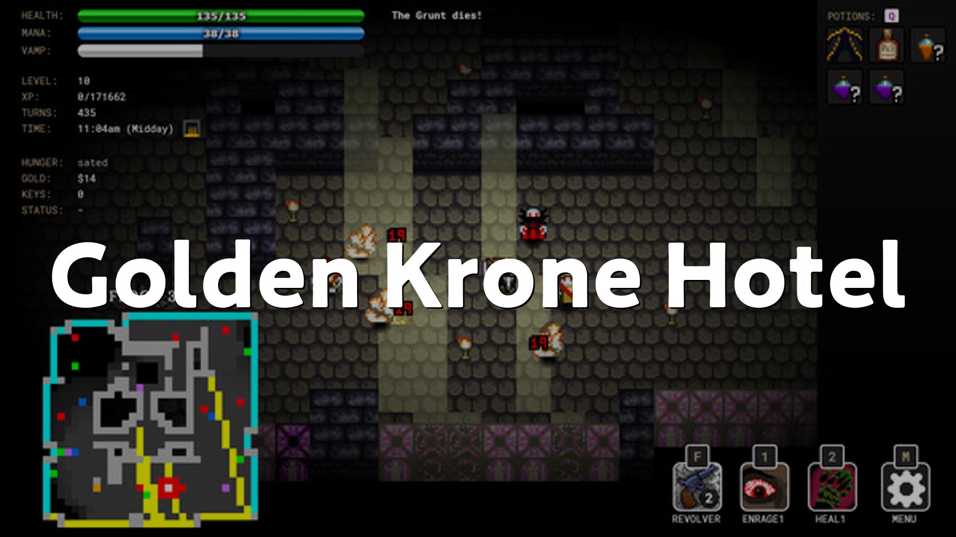 Golden Krone Hotelはゴシックホラーをテーマにしたターン制ローグライクで、プレイヤーは吸血鬼ハンターであるソリナ・アロバスとなって、追放された吸血鬼王子フェインへの復讐に挑みます、