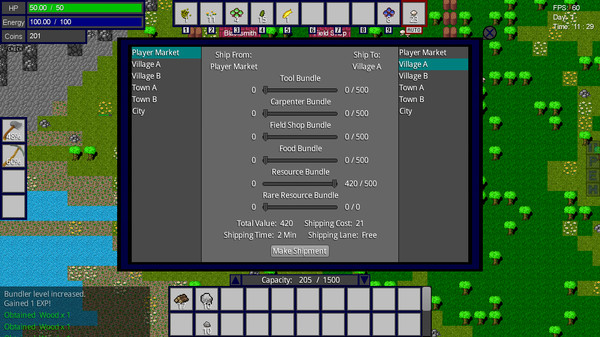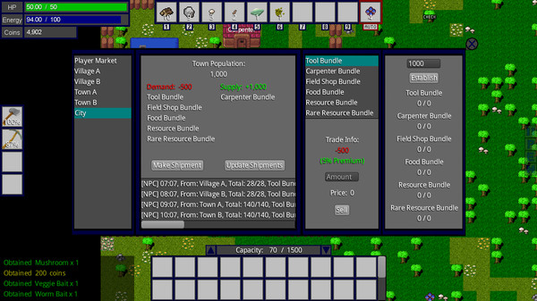 The Frontier は、自分の経営するビジネスを成功させるために、広大な世界を探索し、必要な資源を収集し、アイテムを生産していく、というものです。 町の人口によって供給と需要、価格が変動するため、絶えずマーケットの動向を把握し、戦略的に行動する必要があります。 また、サバイバル要素もあり、食料の確保や、お金切れによるゲームオーバーなど、緊張感のあるプレイを楽しめます。 探索、生産、経営の3つの要素が融合した、奥深いゲームシステムが特徴です。