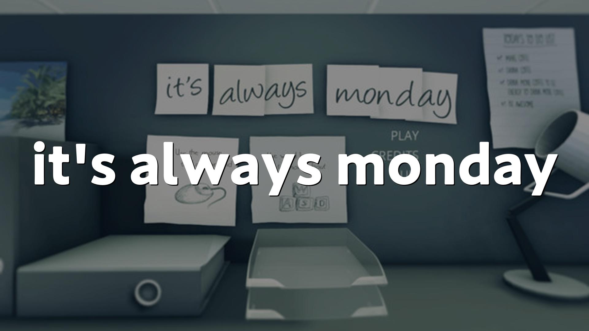 it’s always mondayは、近代的な実存主義をテーマにした、主人公ボブの視点で世界を見渡す一人称の探索ゲームです、プレイヤーはボブとして、夢から覚めた彼が「これまでの人生が嘘だった」と気づき始める瞬間を追体験します、短いプレイ時間で小さな空間を歩き回り、ビジュアルとキャラクター、ゲームのムードを通して物語が語られる設計になっており、操作はシンプルで、五つのトリガーを見つけると脱出に近づくという分かりやすい目的があります、演出はミニマルで、深い叙情や寓意を匂わせる表現が多く、じっくりと世界観を味わうよりも断片的な示唆から自分なりの解釈を楽しむタイプの作品です、