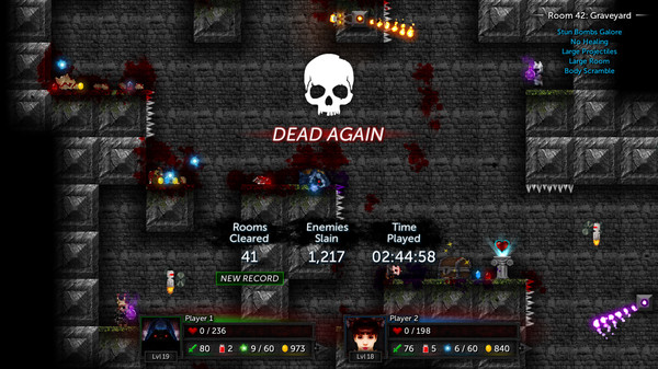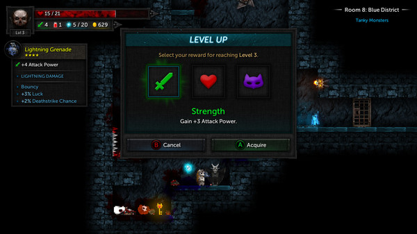 Tallowmere 2: Curse of the Kittensは、ダンジョンを探索しながら強敵と戦うルーグライクアクションゲームです。プレイヤーは、盾を上手に使って敵の攻撃を防ぎながら、ダンジョン内を進み続けます。部屋ごとに出現する敵を倒し、部屋の鍵を見つけて先に進んでいく、というシンプルながらも奥深いゲームシステムが魅力的です。武器や盾、パワーアップアイテムなどを入手しながら、自分のキャラクターを強化していく楽しさも大きな特徴です。ランダム生成される部屋やエネミー、アイテムなど、プレイするたびに異なる体験が楽しめるのも大きな魅力の1つです。