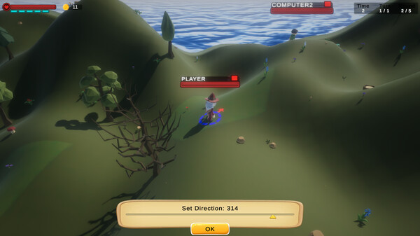 Mage Rumbleは、最後の一人または最後のチームになるまで、さまざまな呪文を相手に投げて勝利を目指すターン制アリーナゲームです、ラウンド間に戦いで得たコインを使って新たな呪文を購入し、装備を強化していくローグライト的な要素もあります、地形や位置は毎回ランダム生成され、選べる呪文は10種類が用意されており、風の強さによって軌道が変わる呪文もあり、戦略性が高いのが特徴です、プレイモードはソロプレイ、オンライン対戦、コンピュータとのチーム戦やフリーフォーオールがあり、2人から最大24人までの組み合わせで遊べるため、少人数のデスマッチから大規模な混戦まで自由にカスタマイズできます、CPUの精度やラウンド数、ターン長など細かく設定できるため、カジュアルな一戦からエキスパート向けの長期戦まで、自分好みのルールで遊べます、
