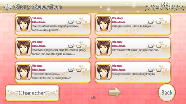 Forbidden Loveは、ステップブラザーとの禁断の恋を描いた乙女ゲームです。主人公は偶然にも、大企業の後継者候補に抜擢されてしまいます。そのため、上司やバトラーたちから次々と注目され、運命的な恋に巻き込まれていきます。ステップブラザーのマイクを筆頭に、さまざまな魅力的なキャラクターとの恋愛を楽しめるのが大きな特徴です。全36のシナリオが用意されており、ボリューム感も十分。ストーリーはドラマチックで、主人公の葛藤や恋の行方を、じっくりと味わえる内容となっています。