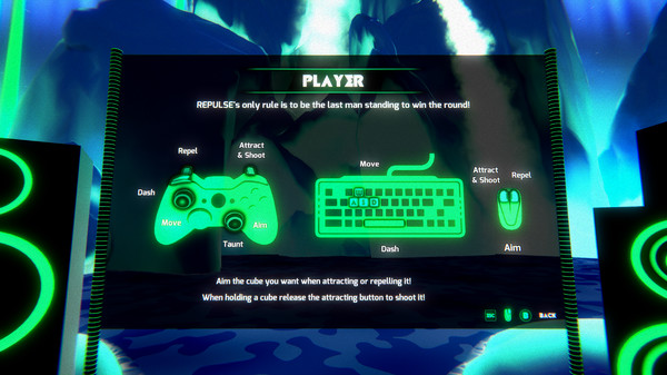 REPULSE: Galactic Rivals は、お友達と一緒に楽しめる地元競争型のコーチゲームです。プレイヤーは宇宙をテーマにしたレトロ風の4つのカラフルな環境の中で、高速で動き回るキューブを引き寄せたり押し払ったりする操作を行います。シンプルなルールながらも、熟練には高度なスキルが求められるゲームです。様々なゲームモードや、3つの難易度のAIキャラクター、充実した音楽などが楽しめる内容となっています。