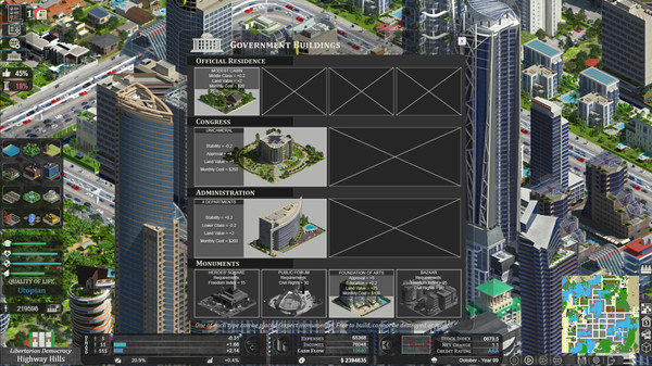 Citystate は、夢のような都市を建設できるシミュレーションゲームです。 21世紀の独立国家を作り上げ、経済や政治、社会情勢をコントロールすることができます。 将来の都市開発を自由に描くことができ、そのために必要な政策決定や資金管理など、さまざまな課題に取り組むのが楽しみといえるでしょう。 見事な超高層ビル群を建設するのも、貧困地区を活性化させるのも、あなたの手に託されています。 市民の要望とバランスを取りながら、目標に向けて着実に都市を発展させていくことが、このゲームの醍醐味です。