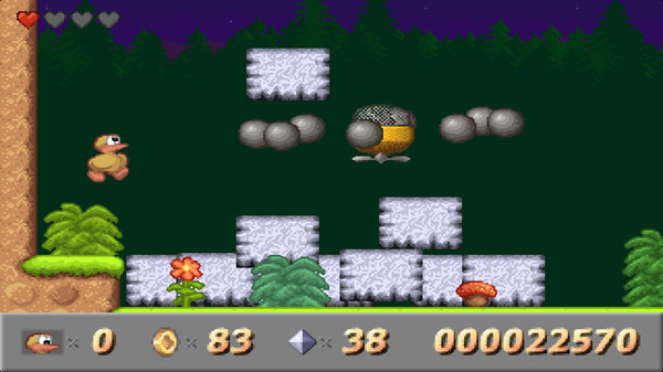 Charlie IIは、懐かしい2Dのサイドスクロールプラットフォームゲームです。レベルを進み、コインやダイヤモンド、パワーアップアイテムを集めながら、敵を倒していきます。水中に隠されたエリアを探検することもできます。