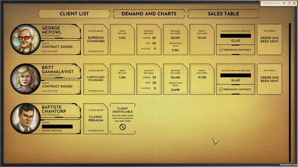このゲームでは、経験豊富な探偵アーサー・オリバーが、ある事件の解決に奔走します。リチャード・カーシーという地元のコーヒー業界のビジネスマンが行方不明になった事件を追っていく中で、経営者として会社を立ち上げ、成功させていく必要があります。限られた資源の中で、従業員の管理、生産、宣伝などを適切に行い、収支を管理しなければなりません。また、事件解決のために、取引先との交渉も重要になってきます。物語、経営シミュレーション、そして交渉という3つの要素が融合したユニークなゲームといえるでしょう。