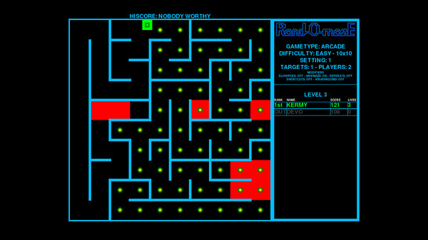 Rand-O-mazEは、クラシックなアーケードゲームの雰囲気を残しつつ、現代的な遊び心あふれるデザインが魅力的なゲームです。シンプルなルールながら奥深い戦略性を秘めており、マルチプレイならではの盛り上がりも魅力的です。ランダム生成のメイズを抜け出すチャレンジは、一人で楽しむも良し、友人や家族と協力して遊ぶのも楽しいでしょう。レトロな雰囲気と遊び心が融合した素晴らしいタイトルだと思います。(編集部)