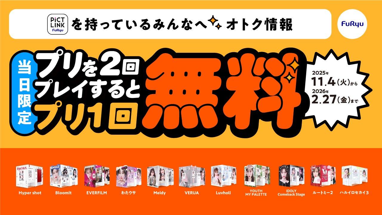 フリュー株式会社は、全国のアミューズメント施設に設置する対象のプリントシール(プリ)機にて『当日3回目お得サービス』を11月4日(火)から2026年2月27日(金)の期間限定で実施します。