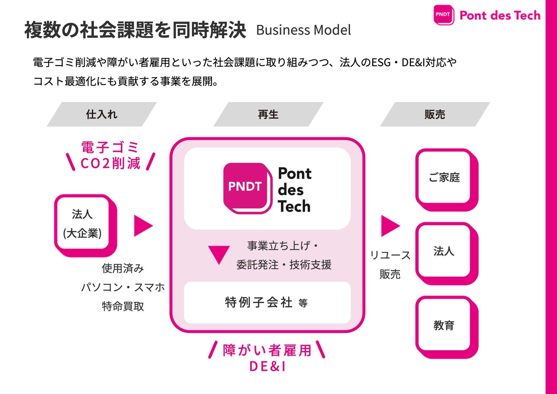ポンデテックは、使用済みパソコンやスマートフォンの再生・再流通を通じて、安心してリユースを選べる社会の実現を推進しています。また、障がいのある方々の就労の場を広げ、「障がい者」や「中古」に対する先入観を変えていくことにも取り組んでいます。