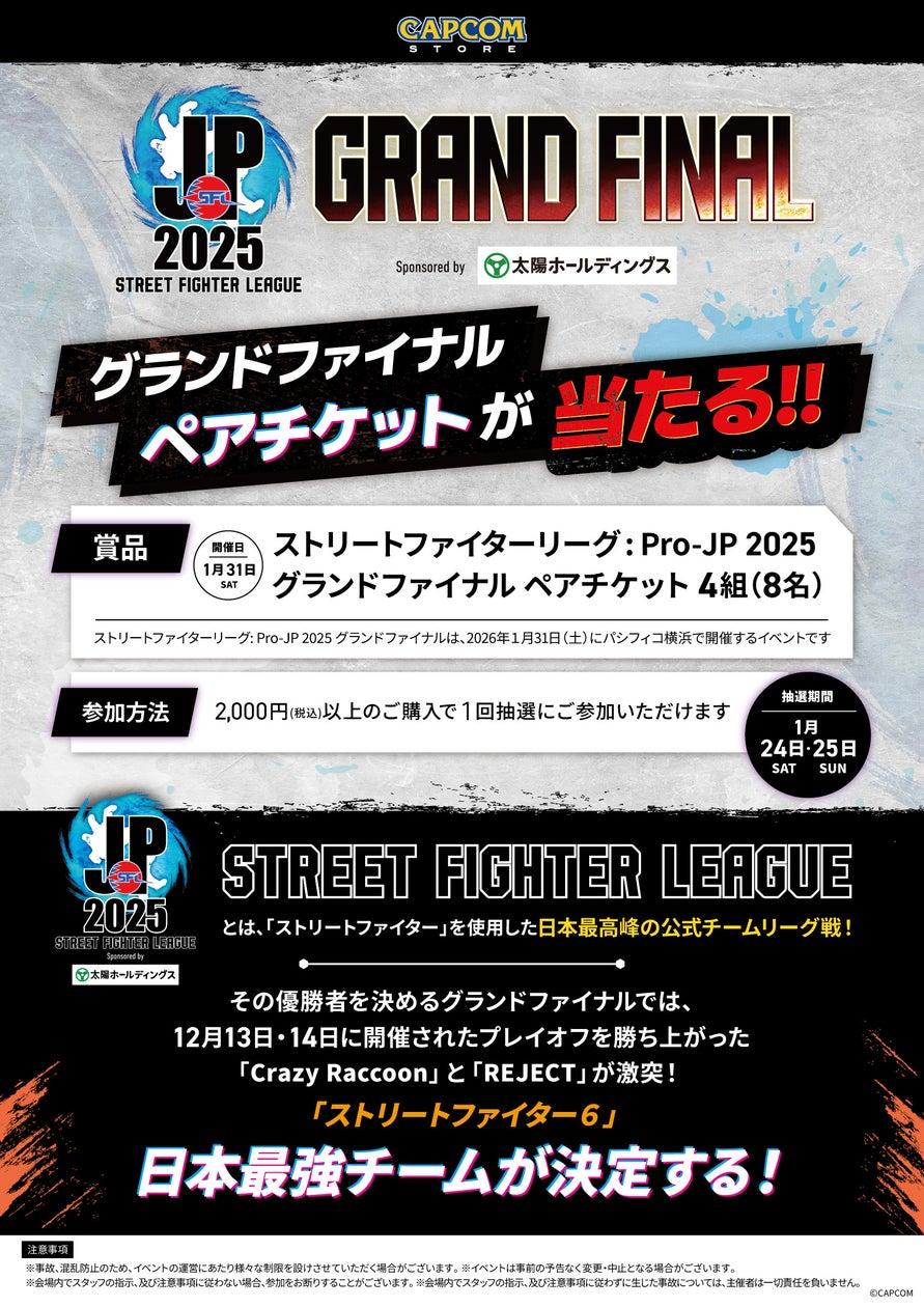 - カプコンストアトーキョーで「ストリートファイターリーグ: Pro-JP 2025 グランドファイナル2025」観戦券ペア(1組2名様分)を抽選でプレゼントするキャンペーンを開催