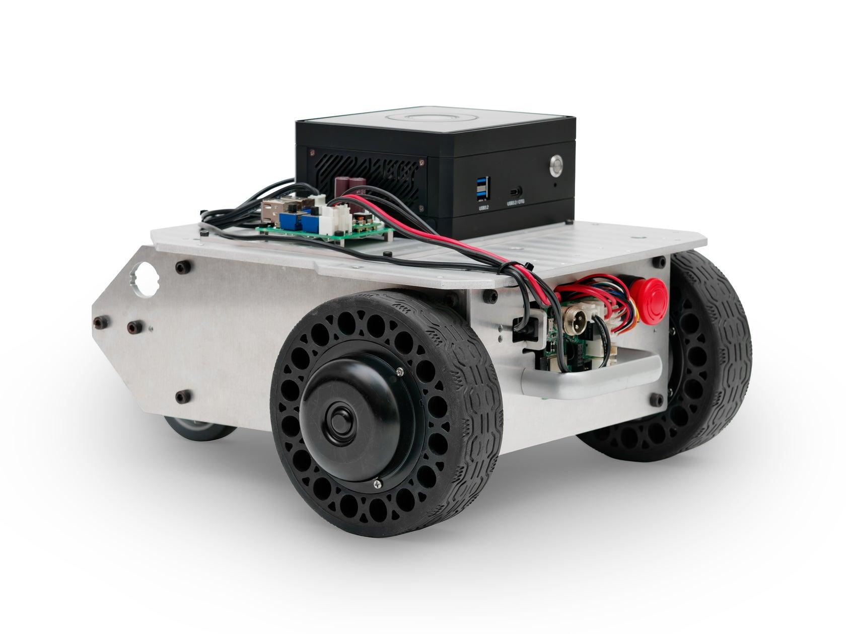 ROS 2環境をセットアップ済みなので、導入後すぐにROS 2対応デバイスとして活用できます。また、台車ロボット本体のバッテリーから駆動可能な仕様になっているため、走行性を損なうことなく研究開発が行えます。