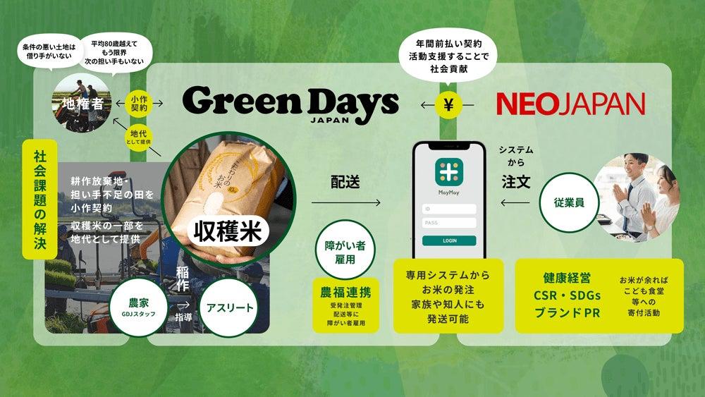 - ネオジャパンとNPO法人Green Days Japanが、地域循環型農業モデル「サステナブル・ライス・パートナーシップ」を締結